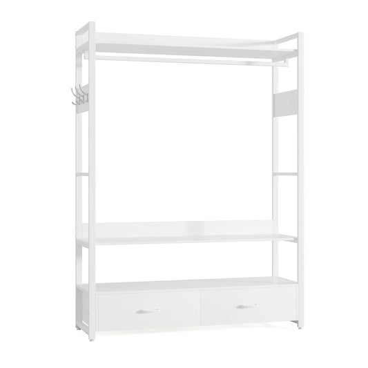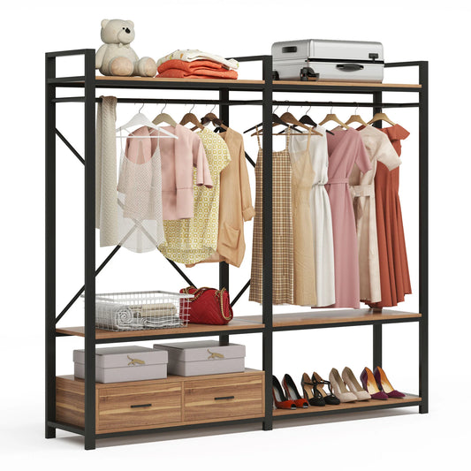 Stable Freestanding Closet Organizer, Garment Rack with Drawers & Storage Shelves