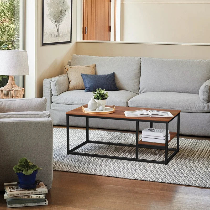 Murano Coffee Table With Shelf Black & Brown 102X52/42 Cm