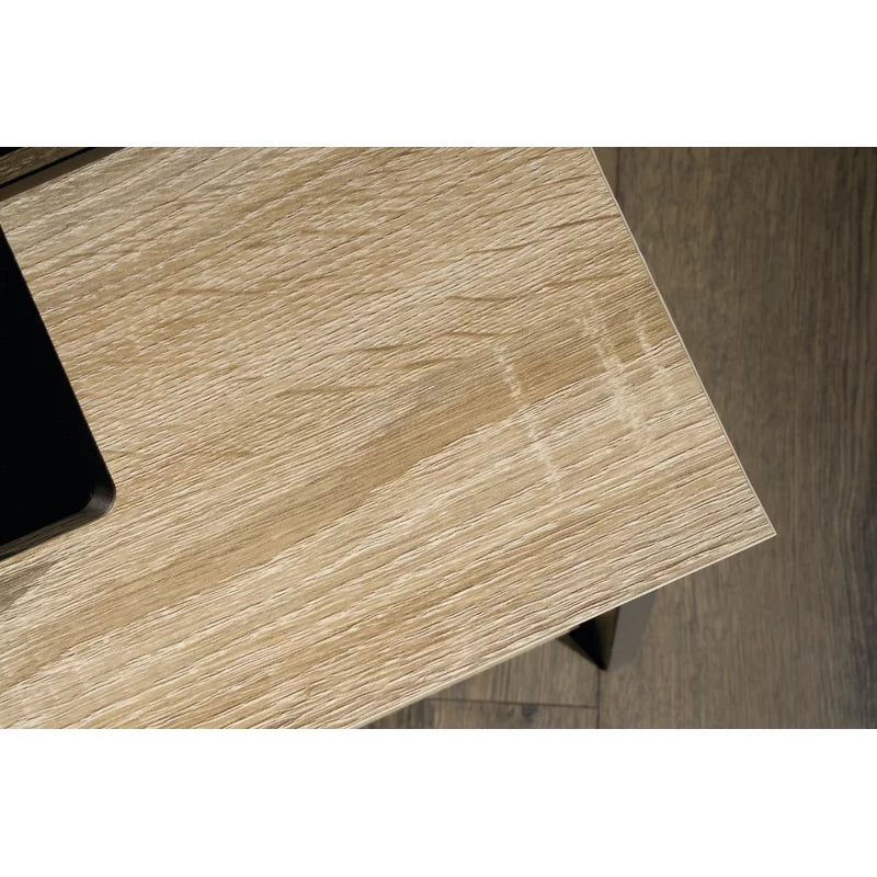 Anchor your entertainment center in rustic, contemporary style with this Artur TV stand for TVs up to 36". Founded on a sturdy metal frame in a black finish, this unit strikes an open rectangular silhouette. Crafted of manufactured wood in a rich charter oak finish/smoked oak finish, two open lower shelves are perfect for displaying the cable box and DVD player, while the top shelf can accommodate TVs up to 36" wide.